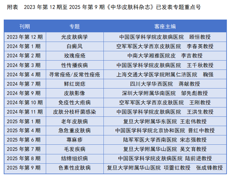 《中华皮肤科杂志》2026—2027年部分专题报道计划暨征稿通知(一)